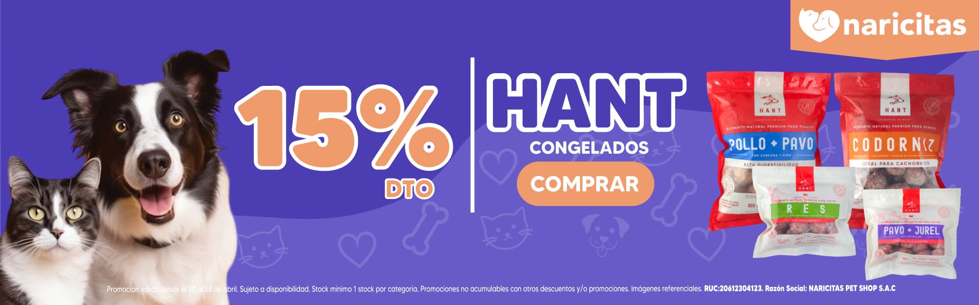 Hant comida congelada para perro de Pollo y Pavo 800Gr