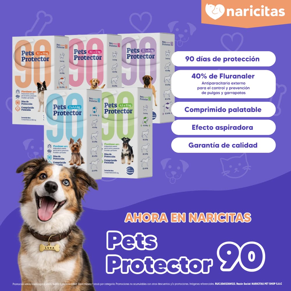 Pets Protector 90 Antipulgas Perro Fluralaner 32.1 a 64Kg 800mg 2 Tabletas