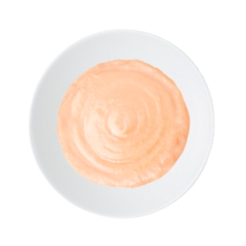 El Churu Bisque tiene una consistencia más espesa y cremosa, similar a una sopa ligada o un guiso fino, mientras que el Churu original es un puré más líquido. El formato de 40g está pensado para ser servido en plato como una guarnición o «acompañamiento» lujoso.