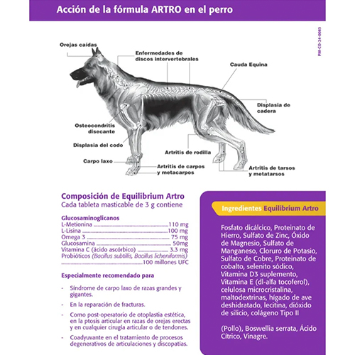 Ver a nuestro fiel compañero perder agilidad y sufrir dolor en sus articulaciones es una de las cosas más difíciles para un dueño. Equilibrium Artro de Elanco es un suplemento veterinario de vanguardia, científicamente formulado para abordar los problemas articulares de raíz, devolviéndole a tu perro la libertad de moverse, correr y jugar sin molestias.