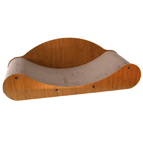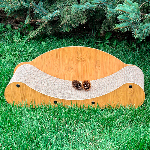 Su diseño curvo único y el respaldo incorporado lo convierten instantáneamente en un cómodo sofá cama, ideal para acurrucarse o estirarse después de una intensa sesión de rascado. La inclusión de un borde de madera resistente con detalles de huella le otorga una apariencia elegante que se integra perfectamente en cualquier decoración.