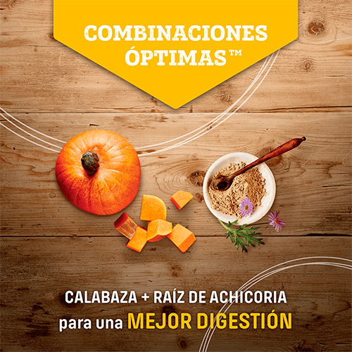 - Cuidado Articular: Incluye mejillón de labios verdes y glucosamina para proteger las articulaciones sometidas a mayor esfuerzo por el peso.